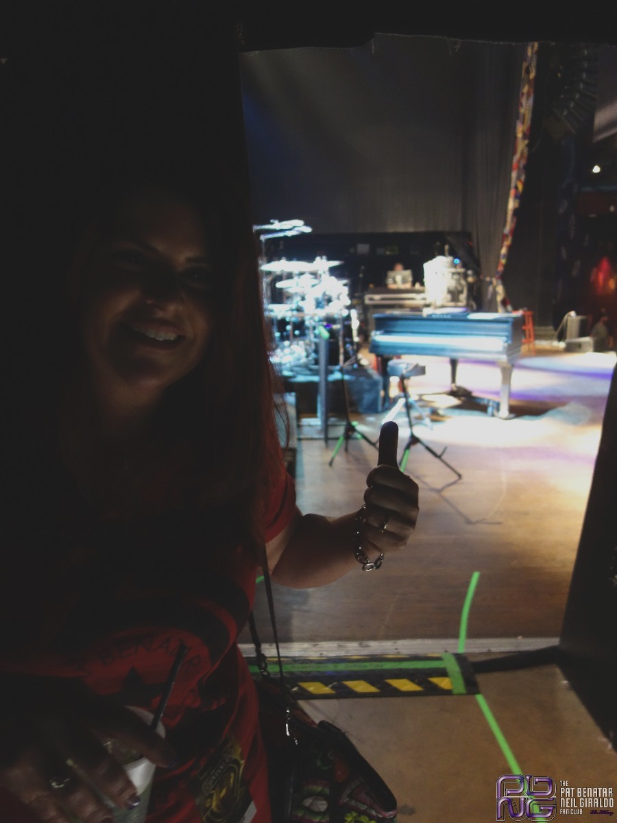 We did not see Spyder. Erin had the 8 VIP’s with Spyder during the time we were with Pat. Then swapped to bring them to Pat. When Jimmy opened the door for us to leave, there was a group of people waiting. It was almost 7:30 at this time, which was listed as show time by the venue. Pat gave us about 20 minutes. While the VIPs were with Spyder, we got all of her time. I’m not sure how much time each of the VIP’s got, as the show finally started a few min after 8pm. Can you say we’re grateful? Yes we certainly are. There were goodbye hugs. Pat said, “Always great to see you both,” and we were on our way out.